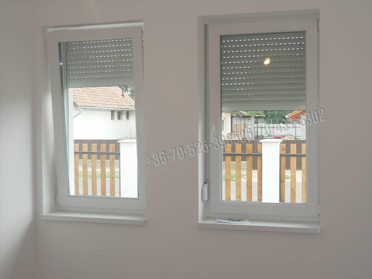 A külső nyílászárók fehér műanyagból készülnek hőszigetelt üveggel, a belső ajtók fából kerülnek 70. 000. HUF, értékben beépítésre.