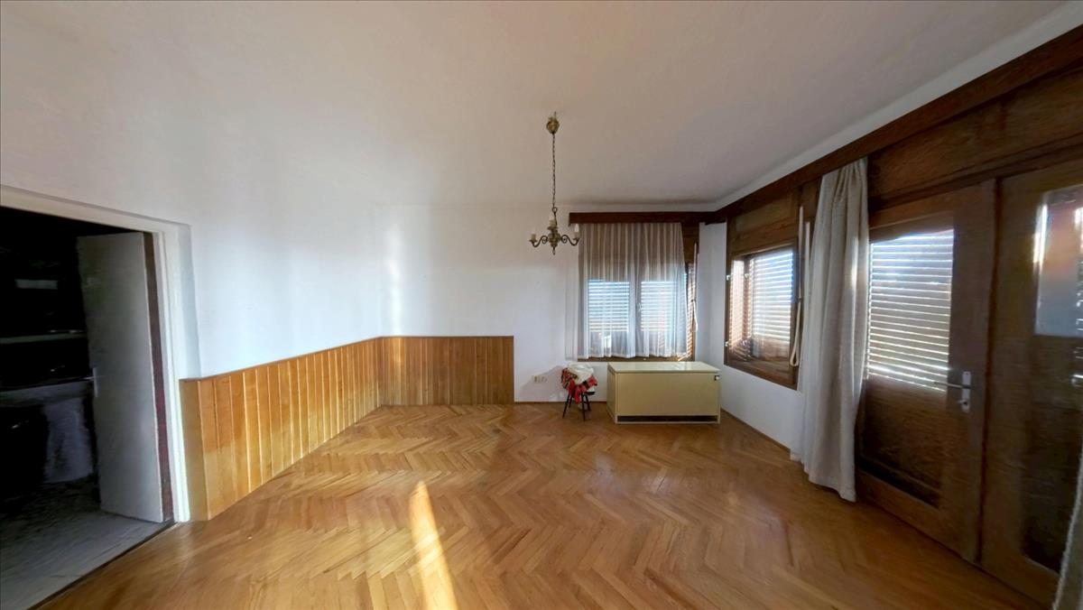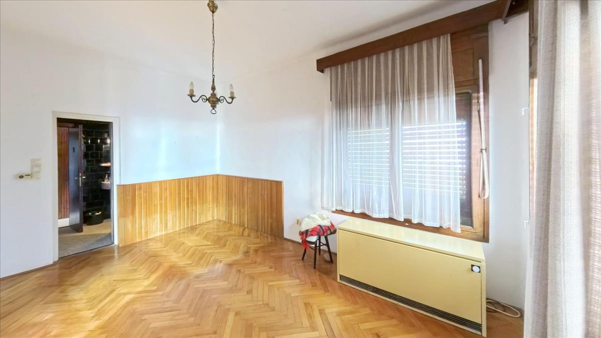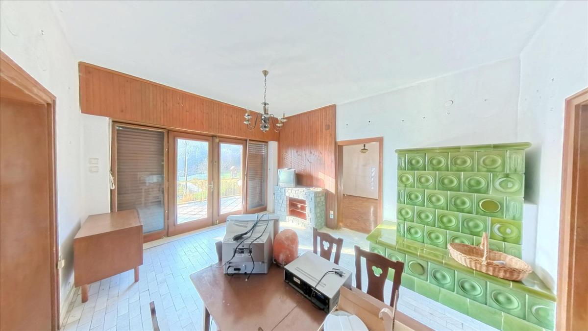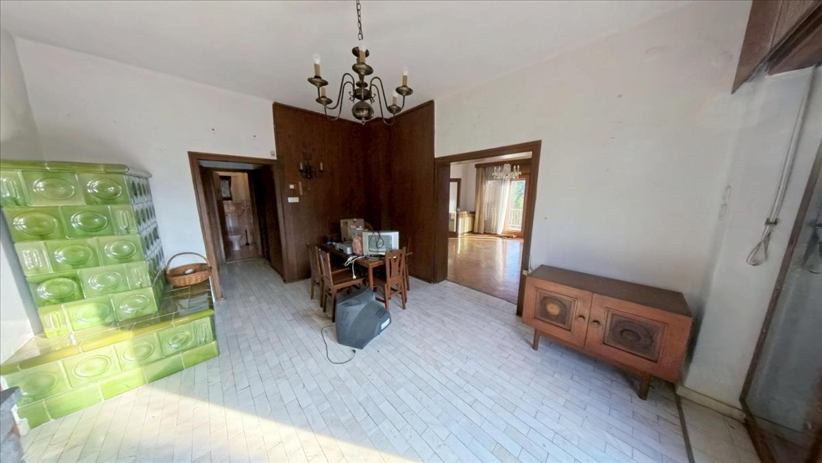 A hálóból egy igazán tágas, világos nappaliba jutunk, melyből szintén közvetlenül léphetünk ki a már említett nagy erkélyre. a nappaliból az étkezőbe érkezünk, melyből nyílik egy jól bútorozható, tágas szoba. a lakórész körbejárható, hiszen az étkezőből szintén a már említett kis előtérbe léphetünk. Az étkezőben egy szép cserépkályha egészíti ki a fűtést. Az étkezőből szintén kiléphetünk a már említett tényleg nagy erkélyre, ahonnan egy lépcsőn keresztül a kertbe is lejuthatunk.