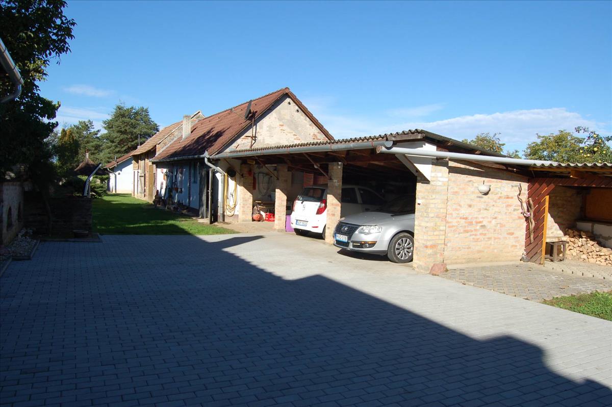 - a ház mögött 3 fedett kocsibeálló, egy garázs, és nagy gazdasági épületek találhatóak.