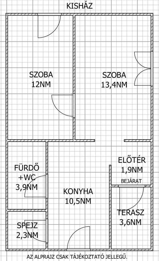 - a "kisház" 44 nm, 2 szoba, konyha, fürdőszoba + wc és spejz felépítésű, bejárata a fedett teraszról nyílik.