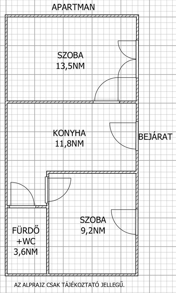 - Az "apartman" 38 nm, 2 szobával, konyhával és fürdőszoba + WC-vel.