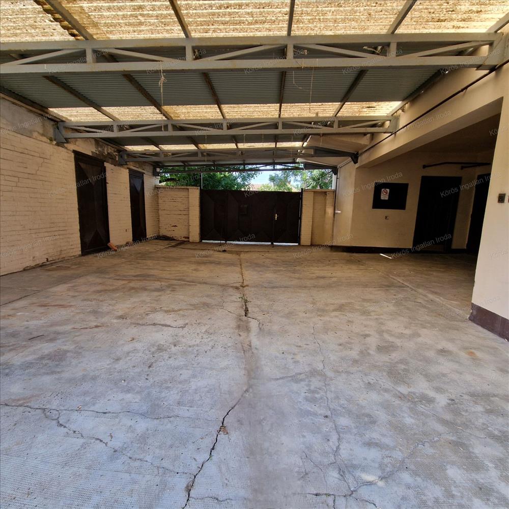 Telken belül aszfaltozott, fedett száraz beálló, mely hídként összeköti a főépületet egy gazdasági épülettel. a gazdasági épületben 2 tárolóhelyiség, + 1 szerelőaknás garázs kapott helyet.