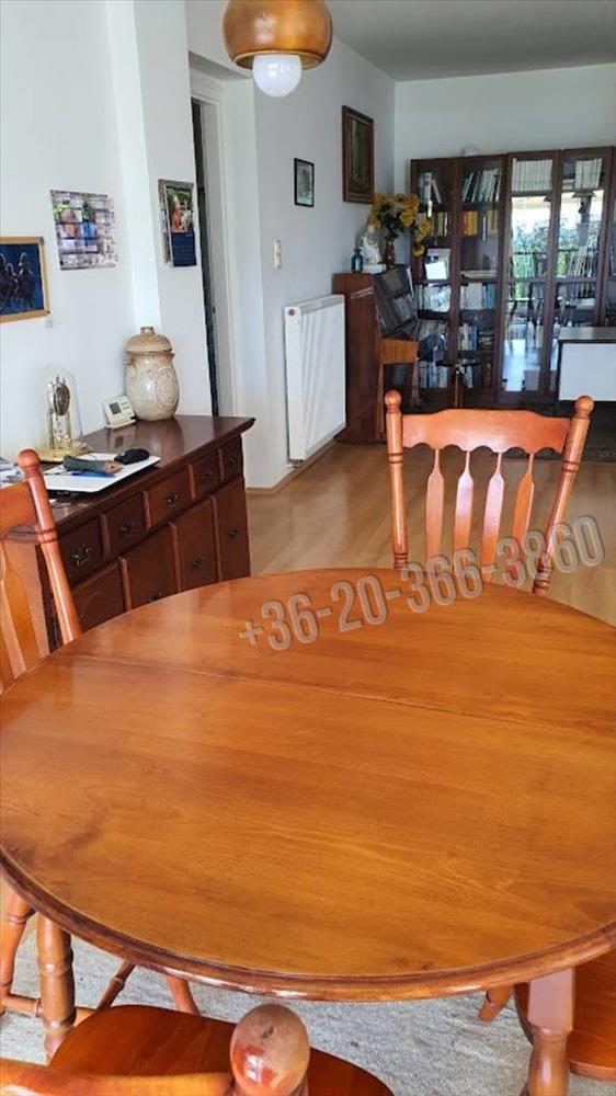 -az étkező -nappali – könyvtárszoba egy légtérben található, de a nappalit egy szint különbség választja el. a nappaliban egy gyönyörű cserépkályha biztosítja ennek a szintnek a melegét valamint kondenzációs gázkazán radiátoros hőleadókkal és ez biztosítja a meleg vizet is.