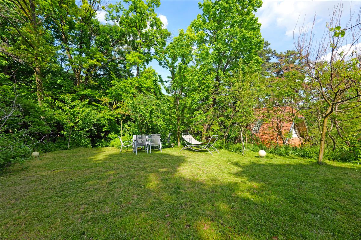Az ingatlan különleges értéke az elhelyezkedése: a telek közvetlenül az erdő mellett található, így a mindennapokat madárcsicsergés, zöld panoráma és zavartalan intimitás kíséri. Itt valóban úgy érezheti, mintha a természet része lenne – mégis Budapest egyik legkeresettebb kerületében élhet.