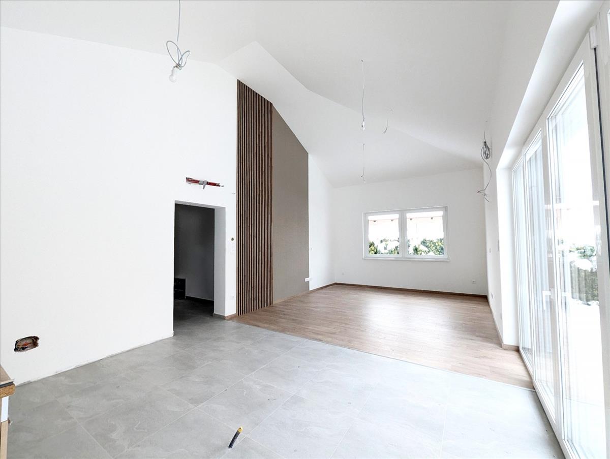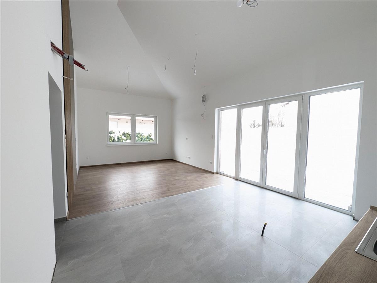 A ház elkészült, már csak a konyhabútor hiányzik, amelyet az új tulajdonos saját ízlésére és költségére valósíthat meg.