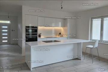 A ház minőségi anyag használattal épült meg, a burkolás elkészült, bútorozás után, azonnal költözhető. a képen látható konyha, és a bútorok, látványtervek. Amerikai konyhás világos nappali