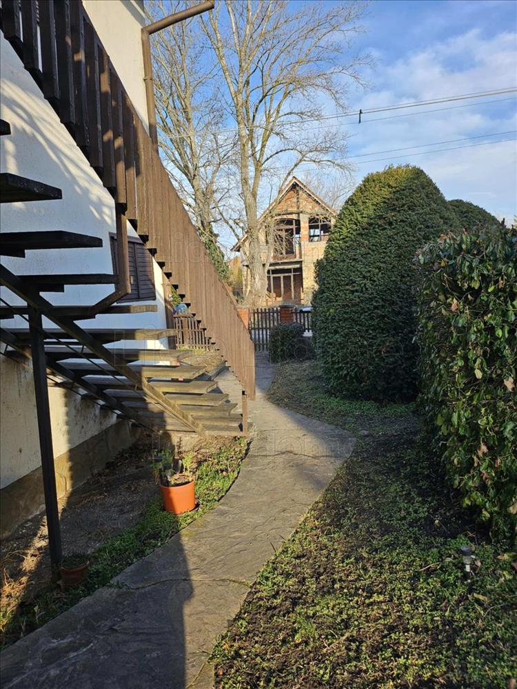 Az emeletre a ház falán kívül elhelyezett kényelmes lépcsőn lehet feljutni. a padlástérbe az emeletről vezet fel a lépcső.