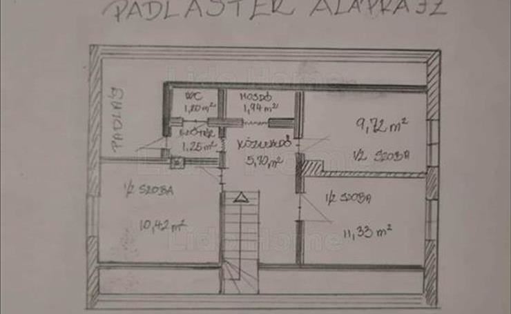 Kialakításra került a padlástér, ahol van 2. 5 Szoba, wc mosdóval, közlekedő és padlásrész is.