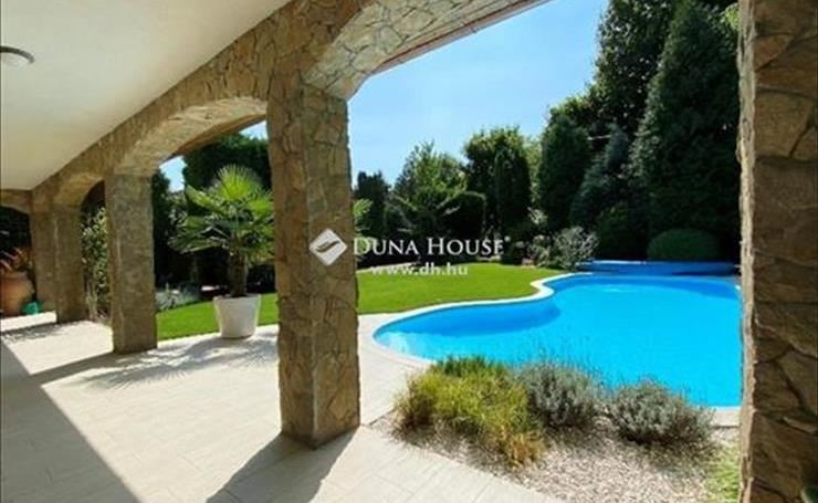 Mediterrán stílusú, igényesen kivitelezett és berendezett 2 szintes családi ház Göd Dunához közeli, lakó-pihenő övezetében!Az 1163 m2-es telken lévő, gondozott kerttel, örökzöldekkel, fákkal, medencével ölelt, 426 m2-es, 7 szobás ház 2013-ban nyerte el jelenlegi formáját. a kiváló elosztás gondos tervezői munka eredménye, fő szempont az élhető terek kialakítása és a praktikus helykihasználás, melyhez magas minőségű kivitelezés társult. a déli fekvésű, körbe napozott ház a telek utcától hátrébb eső részén található, földszinti, emeleti helyiségei, teraszai a szemnek gyönyörködtető hatalmas, ápolt kertre, a 12 méter hosszú medencére tájoltak. a telek fekvése, az épület elhelyezése kapcsán mind a kert, mind a ház tökéletes privát szférát nyújt az itt lakók számára! a közel 310 m2-es földszinti részből 100 m2 az árkádos, fedett terasz, mely közvetlen kapcsolatot biztosít a 91 m2-es nappali-étkező, a 20 m2-es konyha és a kert, a fűthető medence között, kiváló színtereket nyújtva a társasági, családi élet számára. a hatalmas nappali-étkezőt a kényelem, a jól megválasztott, színek, formák, anyagok jellemzik. a konyha sütő-főző szigettel, Miele konyhagépekkel, nagy felületű gránit pultokkal felszerelt. Északi oldala felé háztartási, gépészeti (kazán) helyiségek és egy 26 m2-es fitness terem van, mely akár szobaként, irodaként is használható, külön ajtó nyílik innen a hátsó kertbe és kis fürdő is kapcsolódik hozzá. Az épület fő bejáratai a keleti oldalon találhatók, a gyalogosan érkezők a fedett teraszon, előszobán, az autóval érkezők pedig a 2 állásos, 36 m2-es garázson keresztül juthatnak a nappali-étkezőbe. a garázshoz vezető térkő burkolat kifut az automata kapu bejáratig. a gyalogos bejárat mellett egy 12 m2-es vendégszoba is helyet kapott, külön zuhanyzóval, WC-vel, kézmosóval. a 190 m2-es emeleti szintre a nappali-étkezőből tudunk felmenni, kényelmes falépcsőn. 154 m2-es, 2, 50-es belmagasságú lakótér és 2 db nyitott terasz található itt, melyek a tágas közlekedő által szeparáltak. a déli oldal 32 m2-es, akár ketté is választható szobájához 18 m2-es, gyönyörű panorámás terasz, míg a nyugati oldal 23 m2-es szobájához gardrób is kapcsolódik. a lépcsőfeljárótól balra egy 27 m2-es, minden kényelemmel (masszázs kád, zuhany, 2 állásos mosdó, elektromos szauna) felszerelt fürdőszoba kapott helyet, de a keleti oldalon is van még egy 10 m-es fürdő, a mellette lévő 19 és 10 m2-es szobák igényeinek kielégítése céljából. a közlekedőből közvetlenül tudunk kijutni az északi/keleti oldalon lévő 19 m2-es teraszra. a 38-as külső tégla falaknak, monolit vasbeton födémszerkezetnek, a külső, belső hőszigeteléseknek, a nyílászáróknak, tömör fa beltéri ajtóknak, árkádos terasz kialakításnak köszönhetően a ház energetikailag korszerű, nyáron is kellemes hőmérsékletű, amelyet teljessé a légkondicionált helyiségek biztosítanak. Az ingatlan melegét korszerű szabályozással ellátott fűtési rendszer (Vitodens 200 kazán 300 l-es puffertartállyal) szolgáltatja, földszinten padlófűtéssel, emeleten radiátorokkal. a 60 m3-es, vízgépészettel ellátott medence igény szerint fűthető a kazán által. a garázsban nagy teljesítményű elektromos csatlakozó van kiépítve elektromos autó töltéséhez. a ház biztonságát távfelügyelethez bekötött riasztó garantálja. a gondozott növényzet öntözését automata locsolórendszer biztosítja. a kertben található még egy praktikus faház a kerti szerszámok tárolására, valamint egy fűthető üvegház is. Az ingatlan a meglévő bútorozottsággal, felszereltséggel eladó. Az elhelyezkedés kiváló azoknak, akik a nyüzsgéstől távolabb, úgy szeretnének élni, mintha minden nap nyaralnának, hiszen a Duna part pár lépés. Az m2-es autópálya 10 percen belül megközelíthető, ahonnan Budapest belvárosa 20 perc. Az ingatlan készen arra, hogy élettel töltsék meg! Jöjjön el, nézze meg és legyen az Öné!