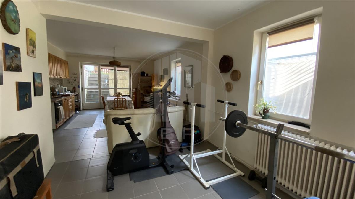 80 m2 alapterületű, udvari bejárattal rendelkező, akár önálló lakrészként is használható. Két generáció kényelmes együttélésére kifejezetten alkalmas. Normál méretű ablakokkal rendelkezik és kellőképpen világos. Egy különálló, sokoldalúan hasznosítható lakóhelyiség tartozik hozzá, amely jelenleg szabadidős tevékenységekre és összejövetelekre szolgál. Kialakítása, konyha-étkező, nappali jellegű rész TV-vel, kanapéval, egy kisméretű konditerem, fürdőszoba-WC. a szinten megtalálható továbbá egy nagyméretű tároló helyiség, ami közvetlen kertkapcsolattal rendelkezik és a garázs is elérhető innen. a tároló helyiségből megközelíthető egy gazdasági helyiség és a kazánház.