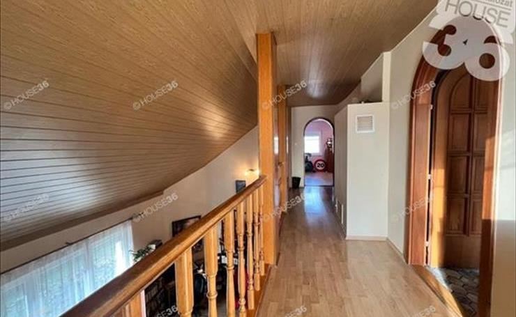 Főépület (120 m2): nappali+4 szoba, étkező-konyha, kamra, 2 fürdőszoba, fedett terasz (20 m2) és erkély (5 m2)