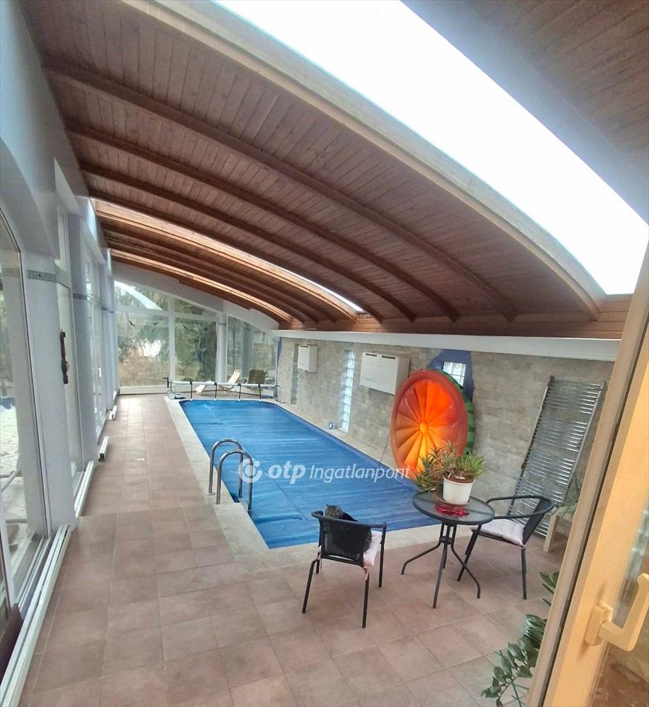 A nappali -konyha részén ki tudunk menni az uszodai részre, ami 56nm-en terül el, fűtött terű, és nagyon világos, a kertre és a teraszra innen is ki lehet menni. Az üvegablakokkal határolt, fedett uszoda kényelmes és nagyszerű lehetőséget nyújt a sokrétű kikapcsolódáshoz.