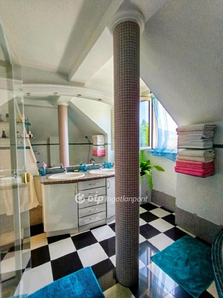 A földszinten, ahol 85nm a lakótér, a bejárattól jobbra és balra egy-egy szoba van. Innen nyílik a tágas nappali-étkező konyha, jobb oldalán egy működő kandallóval. Ezen a szinten még egy wc és egy kádas fürdőszoba található, majd a szint végén innen tudunk lemenni az alagsorba, ahol 112nm-en szauna, edzőrész, és szabad idős tevékenységre alkalmas teret kapunk. Ha valakinek több generációs házat keres, ez tökéletesen megfelel, hiszen ezen a szinten ki lehel alakítani egy külön lakrészt is.