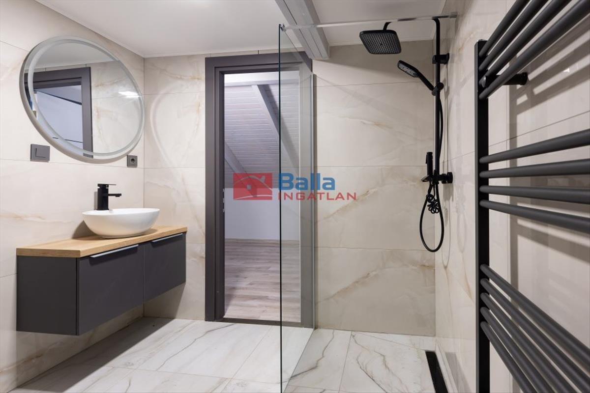 A tetőtér jól használható belmagassággal rendelkezik, itt 3 külön nyíló szoba kapott helyet, így ideális hálószobáknak, dolgozószobának vagy akár gyerekszobáknak is. a tetőtéri helyiségeket tetősík ablakok világítják meg, a hangulat kifejezetten otthonos. a szinthez egy modern, walk-in zuhanyzós fürdőszoba is tartozik.