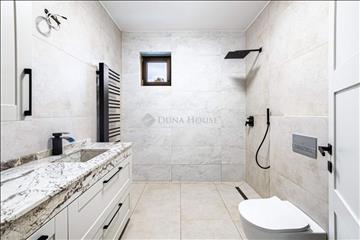Leányfalun, újszerű, mindössze 2 éve befejezett családi ház eladó! Kivételes lehetőség egy minőségi kivitelezésű, modern, nettó 120 m²-es otthon, amely 1059 m²-es, rendezett telken fekszik. a házat 2 éve, saját célra építették, így minden részletében átgondolt, praktikus és otthonos jelenleg is lakott. a házról:- Egyszintes, kiváló elrendezésű: tágas nappali, 3 világos hálószoba, 2 teljes értékű fürdőszoba és külön vendégmosdó- Nagy, napos terasz öleli körbe a házat mely a nappaliból, konyhából és mindegyik hálószobából közvetlenül megközelíthető- Konyhája és beépített szekrényei magas minőségben, asztalos által kivitelezett. - Rendkívül praktikus tárolási megoldások beépített szekrények minden szobában és a folyosón, kamra, mosókonyha, beépített előszoba bútor- Fedett kocsibeálló építhető, az udvaron legalább 3 autó kényelmesen parkolhat- Minőségi anyagokból épült: 15 cm grafitos hőszigetelés, 3 rétegű nyílászárók, mind elektromos redőnnyel felszerelve- Bosch kondenzációs kombi kazánról üzemeltetett padlófűtés, a nappaliban és a szülői hálóban klíma, a másik két szobában pedig kiépített klímarendszer- Rendkívül alacsony rezsi, gazdaságos fenntartás- Elektromos kapu és előkészített kamerarendszeres riasztó (a kábelezés készen van)- a beépített gépek még garanciálisak, Bosch, aeg, ElectroluxA telekről és környezetről:- 1059 m²-es, gondozott telek, mely rengeteg lehetőséget rejt magában. Kiválóan parkosítható, beültethető. - Nem árterületen fekszik, könnyen megközelíthető közvetlenül a főútról- Buszmegálló 2 perc, bevásárlási lehetőség 7 perc sétára, a Duna-part mindössze 5 percnyi távolságra- Biztonságos, családbarát környék- Közelben színvonalas iskola és óvoda, kiváló helyi infrastruktúra. Az ingatlan per és tehermentes, a teljes vételár megfizetését követően gyorsan birtokba vehető. Ez a ház ideális választás mindazoknak, akik modern, kényelmes és alacsony fenntartású otthont keresnek Leányfalun, nyugodt, mégis jól megközelíthető helyen. Ha szeretné személyesen is megtapasztalni a ház harmóniáját és kényelmét, keress bizalommal. a hét bármely napján, rugalmasan megtekinthető.Berényi Zoltán +36209420042