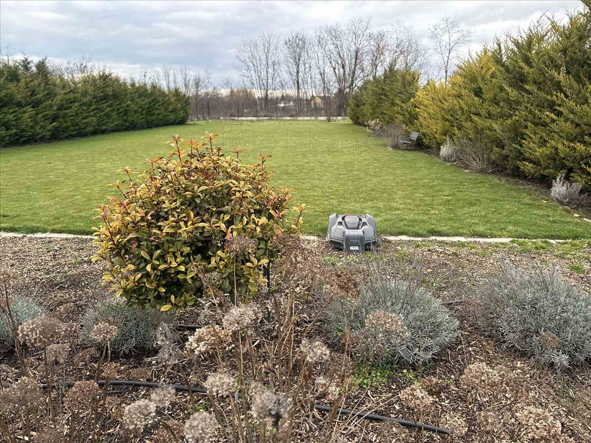 Az 1742 m²-es parkosított kert öntözőrendszerrel és robotfűnyíróval felszerelt. a kertben található medence hőszivattyúval és fedéssel, amely egész szezonban kényelmes használatot biztosít.