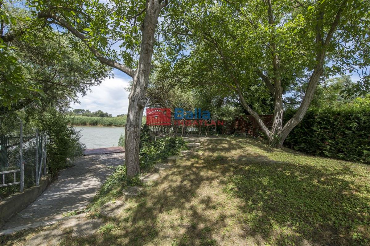 A 1982 m²-es kert parkosított, gyümölcsfákkal, fúrt kúttal, robotfűnyíróval, 4x8 m-es fűthető medencével, automata öntözőrendszerrel. a vízparton saját stég és borospince található.
