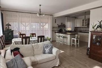 A ház központja a lenyűgözően világos, amerikai-konyhás nappali, ahol a kandalló nemcsak meghitt hangulatot teremt, hanem az egész otthon melegéről is gondoskodik. a külön nyíló hálószobák a tágas közlekedőről érhetők el, biztosítva a család minden tagja számára a privát életteret.