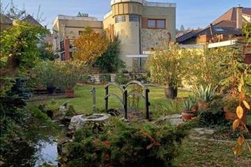 Fűtése: Buderus gázkazánnal (2 db kazán van, az egyik tartalék), a melegvíz ellátást indirekt tároló biztosítja. a ház kialakítása:-alagsorban: előtér, háztartási helyiség, borozó, gépészeti rész, szaunarészleg, 2 szoba, mini konyha, fürdőszoba, télikert-lakószinten: lépcsőház, konyha, kamra, étkező, nappali teraszkapcsolattal, 2 szoba, fürdőszoba, különleges wellnes rész jacuzzival-tetőtérben: szoba tetőterasszal. a kert nagyon szép, rendezett, kedves kis kerti tó, fahíd, érett növényzet dísziti. Itt található egy kb. 35 Nm-es melléképület, aminek a födéme zöldtetőnek lett kialakítva. Jöjjön, nézze meg! Érdemes!