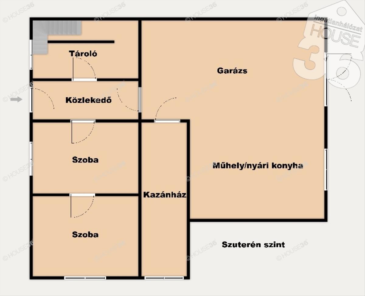 A szuterénben utcáról behajtható szerelőaknás garázs és műhely/nyári konyha/tároló (egy légtérben összesen 50 m2); további kettő, befejezésre váró helyiség (11 és 12 m2), külön hátsó bejárat.