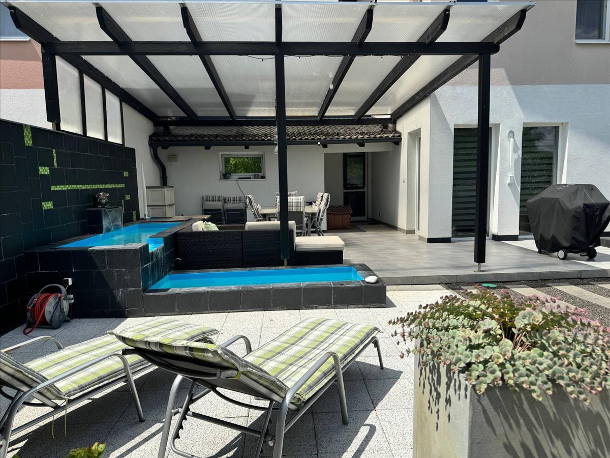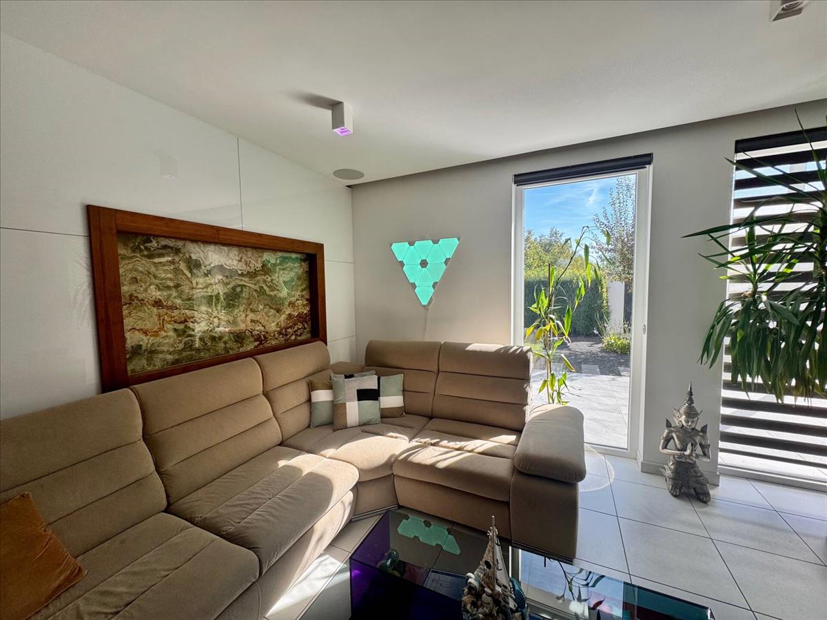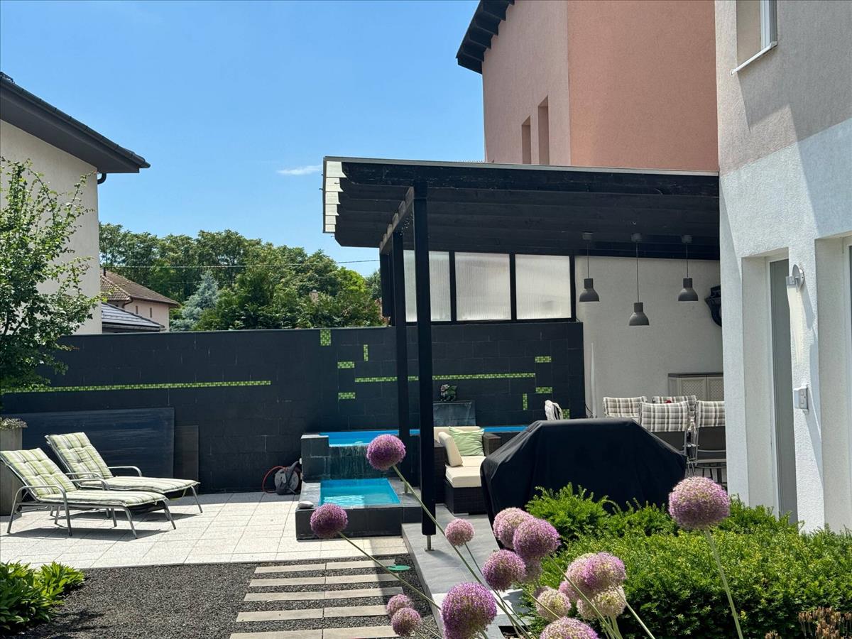 Modern, jól karbantartott praktikus ház teljes bútorzattal, önálló irodaépület, két különálló garázs, egyedi tervezésű gondozott kert különleges világítással várja az új tulajdonosát, költözésre kész állapotban!