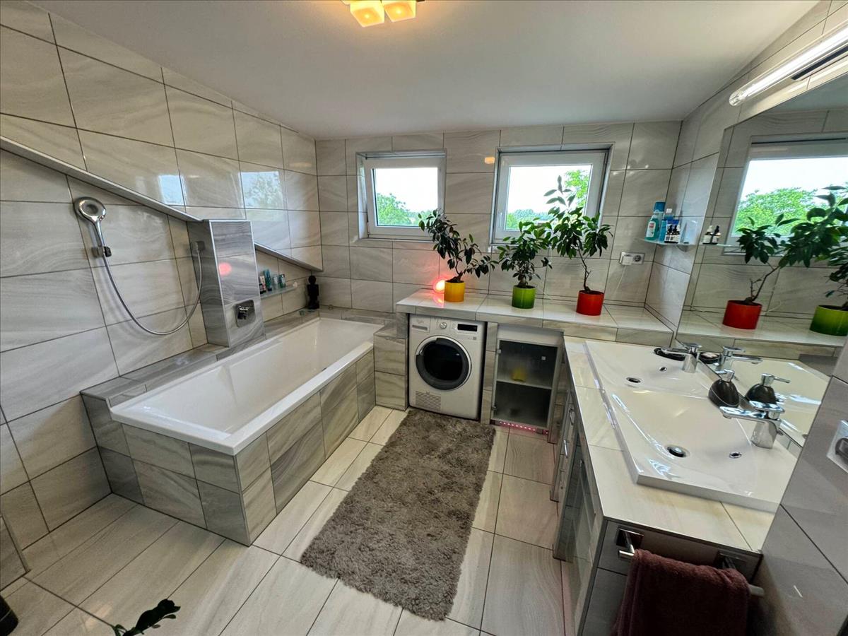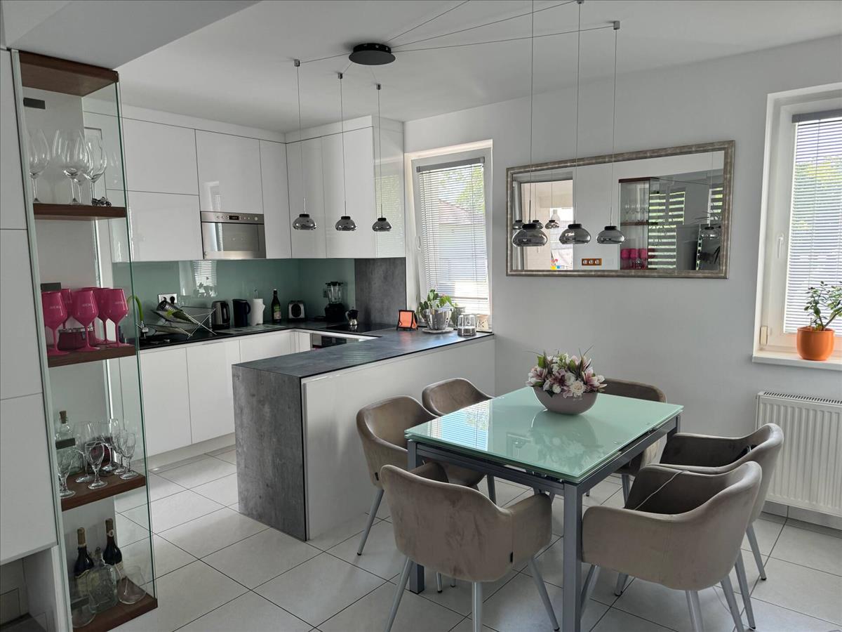 • 110 m2-es kétszintes ház, amerikai konyha, 3 szoba, 1 gardrób szoba, 2 fürdőszoba