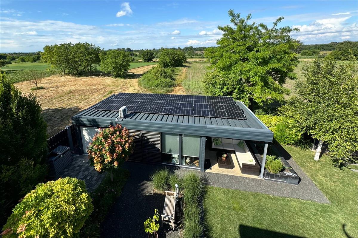 A tetőn lévő 8 kW napelemeknek köszönhetően télen és nyáron is alacsony fenntartási költségeket garantál.