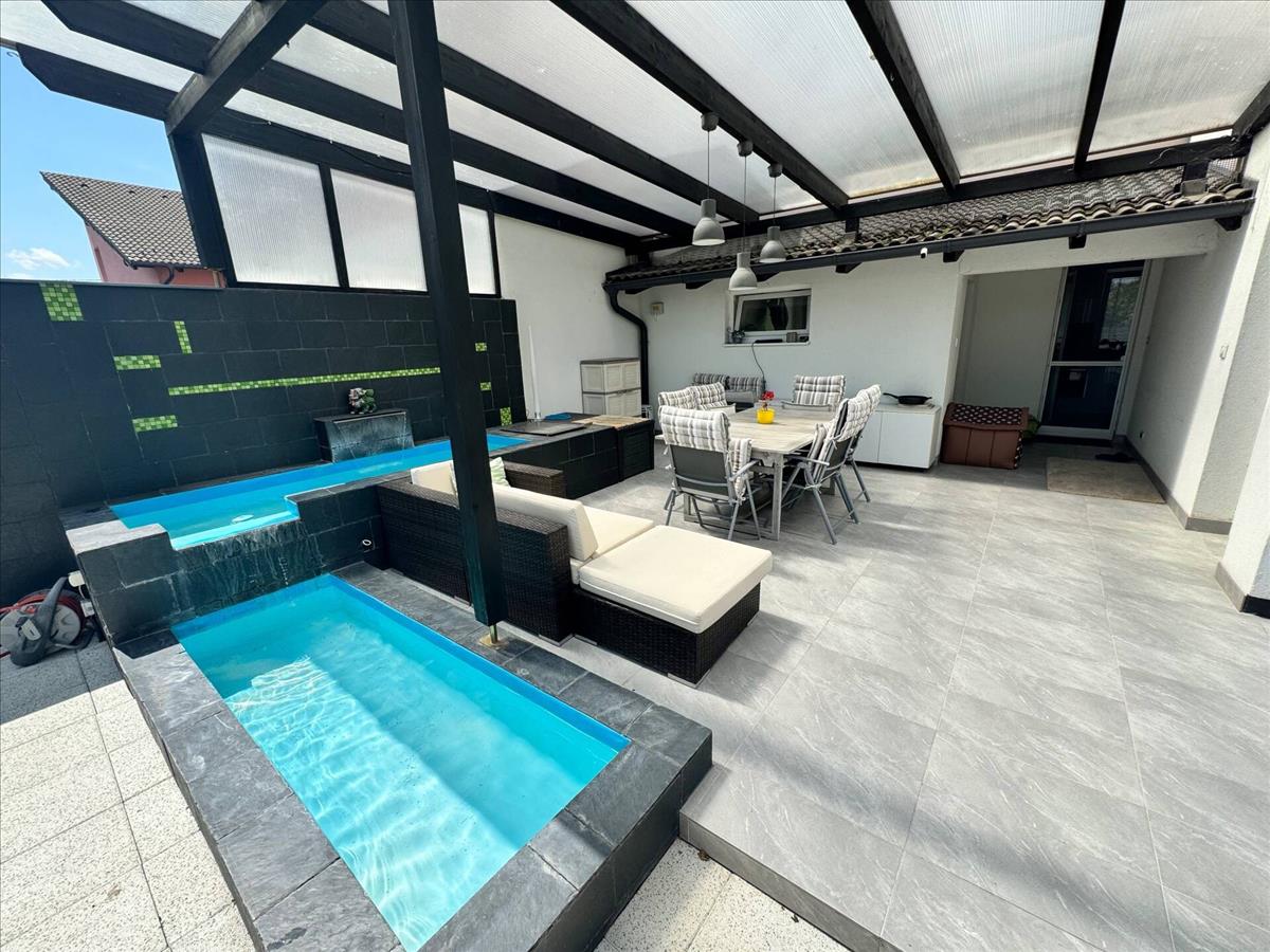 • Parkosított kert, napozó terasz, kerti bútorok, tollaslabda pálya, 2 db élmény medence csobogóval, Jakuzzi
