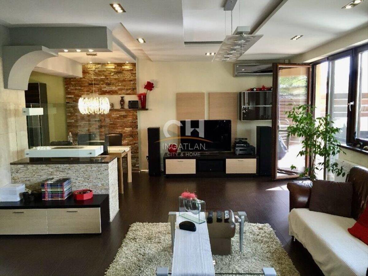A nappaliban egy üveg látványkandalló emeli a téli esték hangulatát. Innen a tágas (70 m2) déli fekvésű, mindig napos teraszra jutunk, ahol kialakítható egy télikert, melyben fűtés, párátlanítás, klíma, víz kiállások találhatók, ill. Szórakoztató elektronika előkészítés.