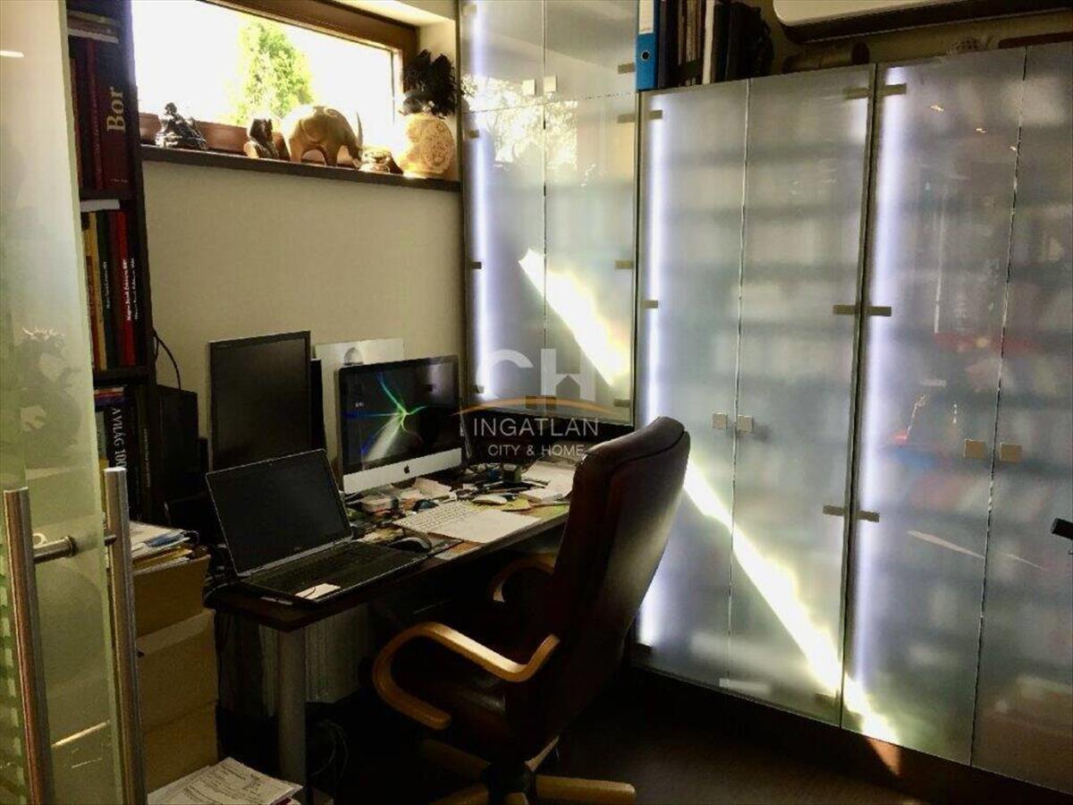 Ezen a szinten található egy dolgozó szoba homokfúvott üveg tolóajtóval, valamint egy fürdőszoba, wc, illetve egy háztartási helyiség.