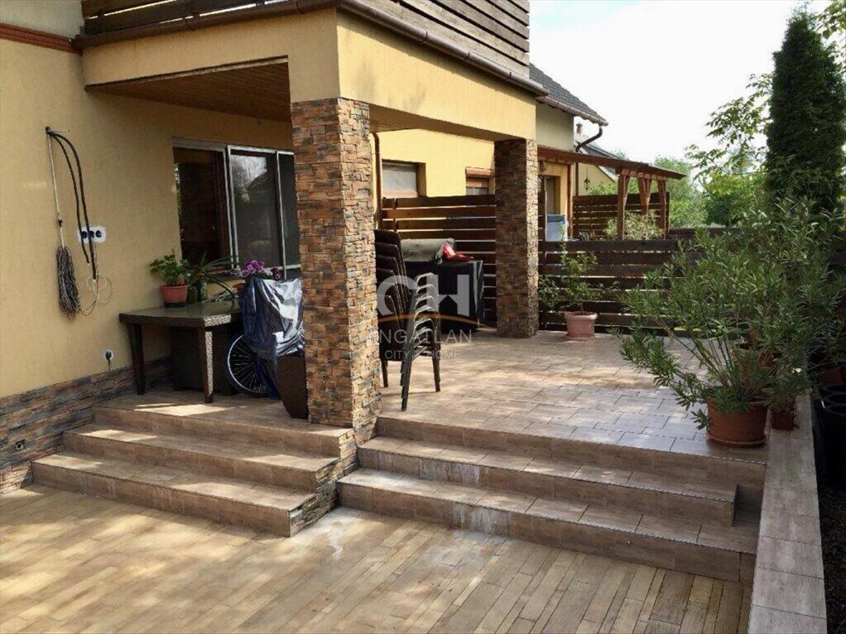 A ház 2007-ben épült, 2 szintes. Az alsó szinten (120m2) található egy előszoba lépcsőházzal kombinálva, majd belépünk a tágas nappaliba, mely egy légteret képez az étkezővel és a konyhával.