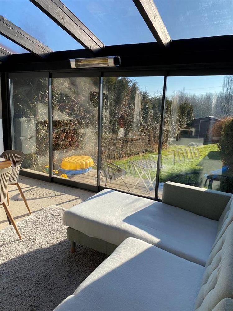 A lakás egyik kiemelkedő előnye a 16 m²-es, teljesen zárt terasz, amely nagy üvegfelületeinek köszönhetően világos, egész évben használható élettér. Padlófűtéssel, kandallóval és elektromos fűtési lehetőséggel is ellátott, ugyanakkor a nappalitól teljesen leválasztható – ideális pihenéshez, dolgozószobának vagy télikertnek.