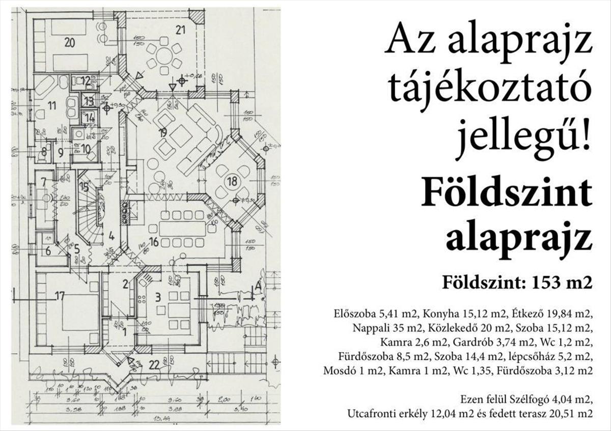- Előszoba, konyha, étkező, tágas nappali (35 m²), közlekedő
