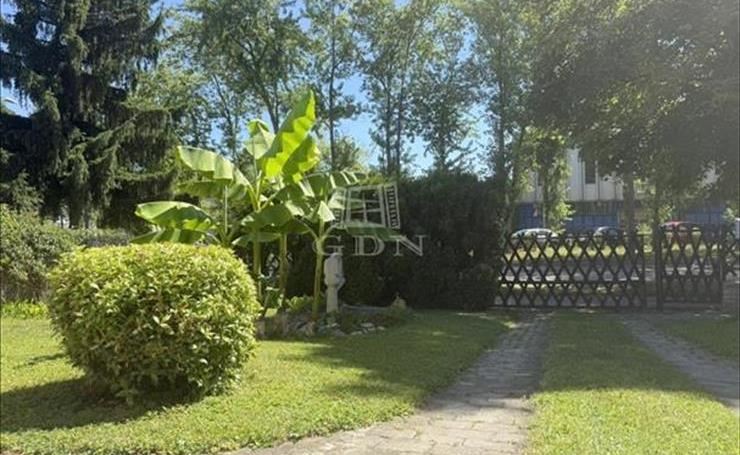 Mérete megfelelő kerti bútorok, játékok, medence ( betonozott rész készült hozzá ) kihelyezésére, azonban nem kell egész napokat fűnyírással tölteni.