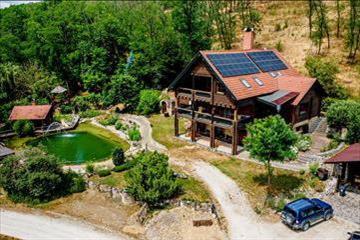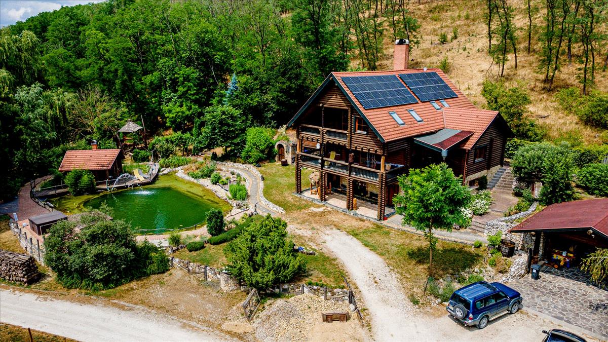 A birtok magánterületi részén helyezkedik el a háromszintes finn fa rönkház, ahol a park üzemeltetéséhez kialakított irodarész is helyet kapott. a területen saját kerti tó, szaunaház, jakuzzi és borospince áll rendelkezésre. Ideális tulajdonosi lakrészként vagy prémium vendégházként is hasznosítható.