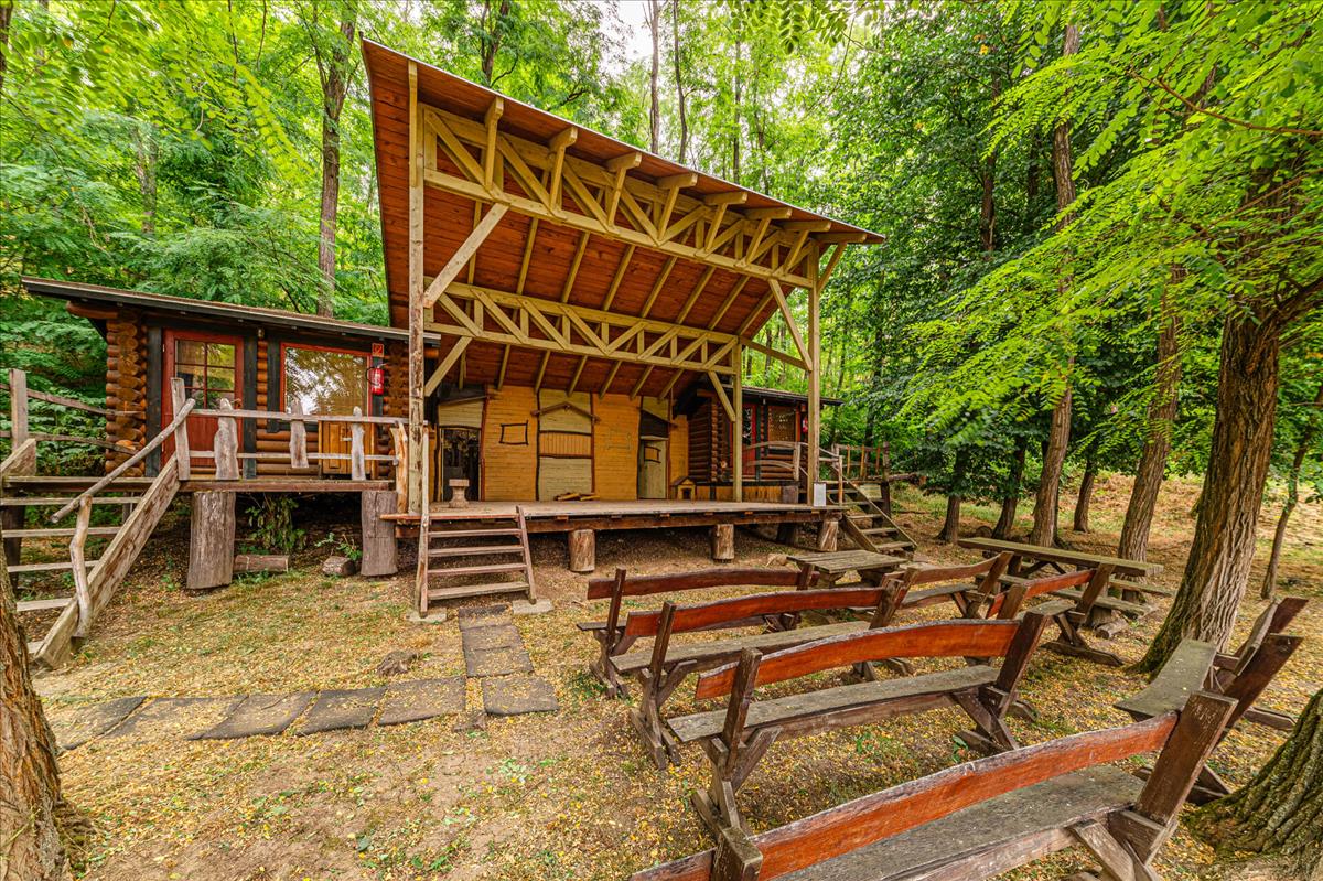 Szabadtéri vendéglátóhelyek kemencékkel és népies fa bútorokkal