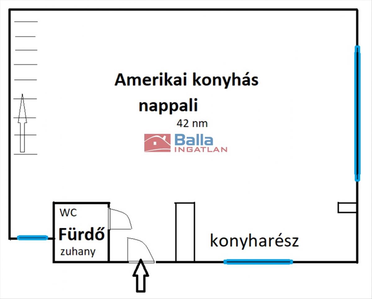 ➡ Alsó szint: amerikai konyhás, nagy méretű nappali, előtér, zuhanyzós fürdőszoba