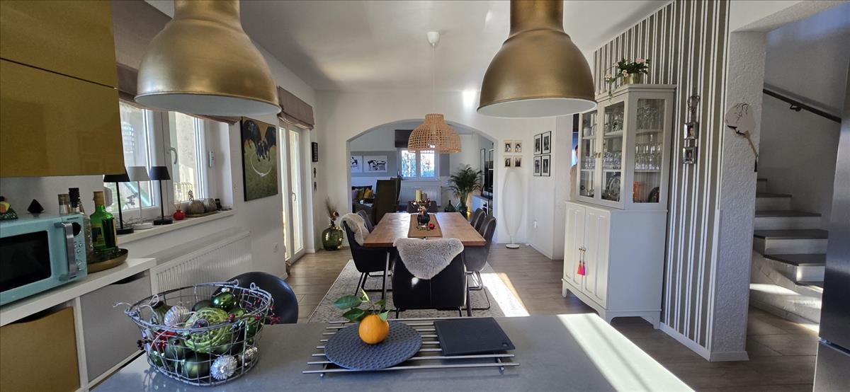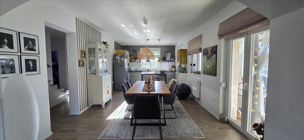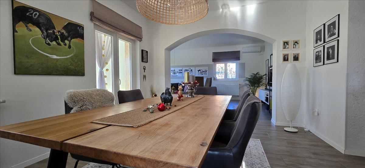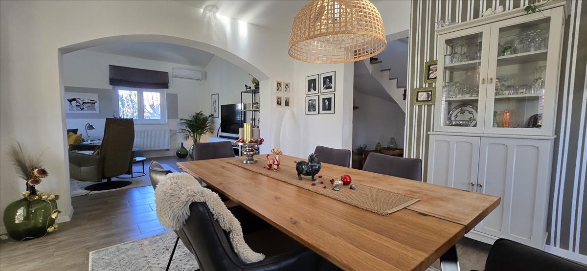 A birtok összesen 169 m² lakóterülettel rendelkezik, és egy 933 m²-es telken áll. a helyszín egy kis isztriai falu autentikus hangulatát biztosít, intimitás és nyugalom érzésével, miközben közel van a parthoz és a pezsgő isztriai városokhoz, amelyek változatos szolgáltatásokat kínálnak. a ház időtlen dizájnnal és elegáns építészettel rendelkezik, két szintes otthonként van berendezve, ízlésesen bútorozva és jól felszerelve, különös hangsúlyt fektetve a kényelemre és a funkcionalitásra. Nagy ablakok biztosítják a bőséges természetes fényt, világos és barátságos belső teret teremtve a nap folyamán.