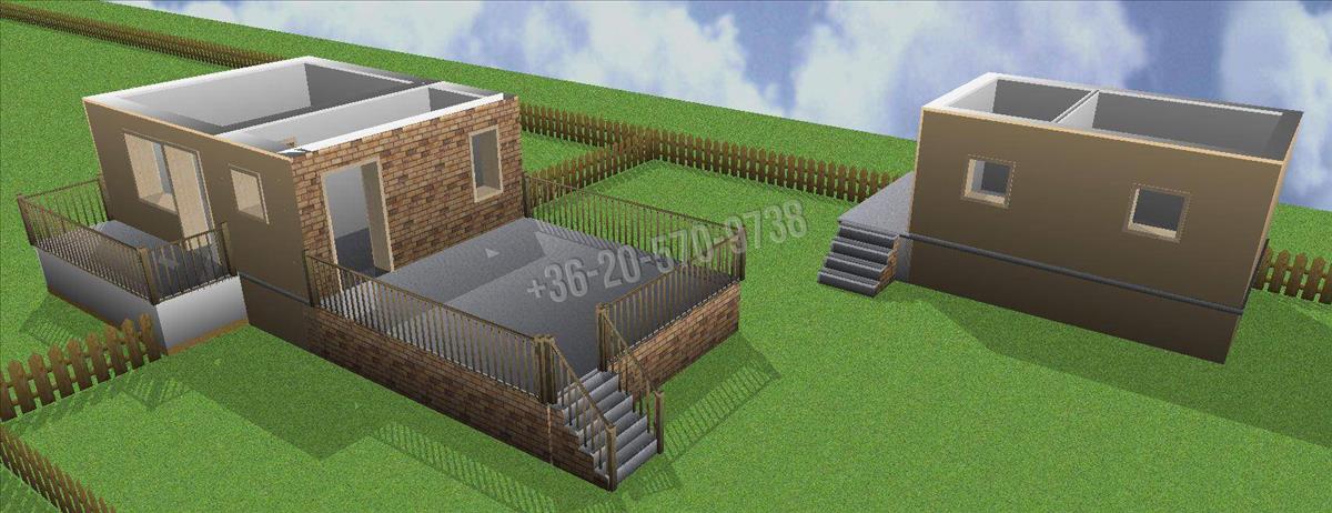 Mindkét kis ház szilárd beton alapokon áll részben alápincézett, betonfödémes, 30-as tégla építésű és tatai cserép fedésű sátortetős épület. Mindkettő jó minőségű vakolattal ellátott. Alapterületük nettó 23 m2 és 15, 6 m2. a nagyobbikhoz 19 m2 fedett + még egy 6 m2 -es különálló terasz, a másikhoz házhoz pedig egy 4, 6 m2 -es terasz tartozik. a nyílászárók hőszigetelt műanyag, illetve fa ajtók és ablakok.
