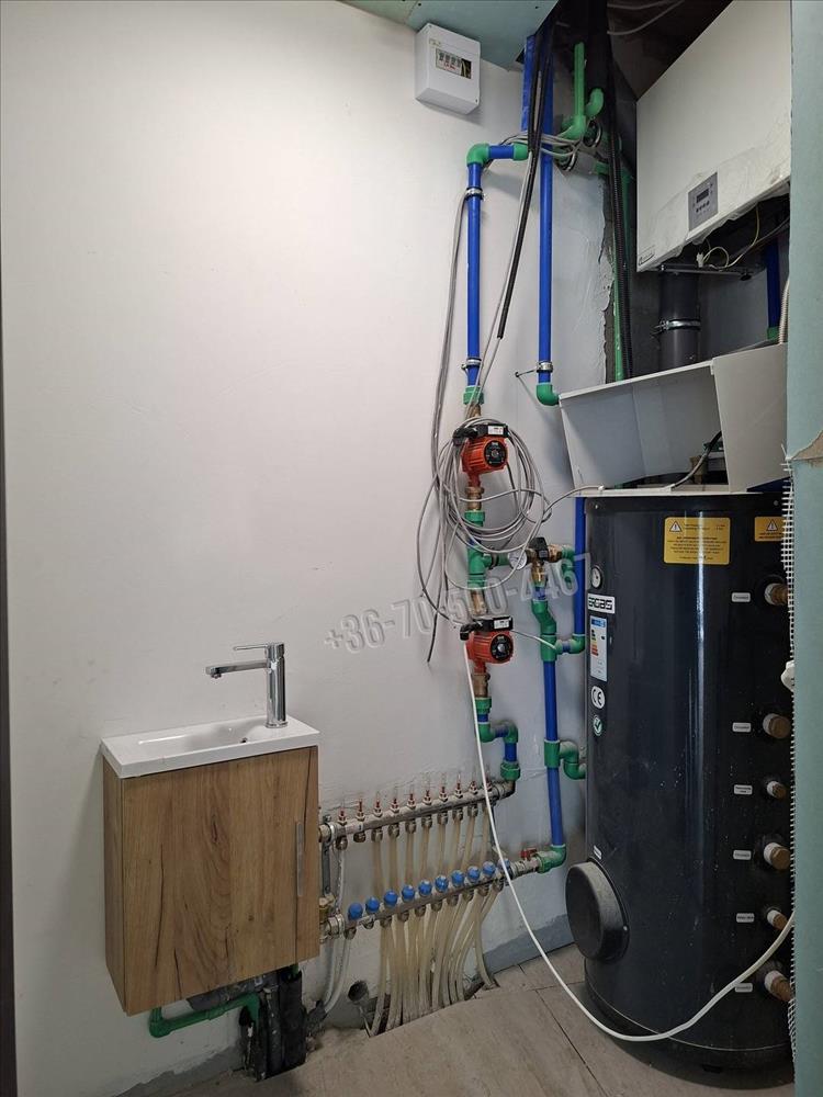 Hőszivattyús hűtés fűtés + split kiállás(gyorshűtés igény szerint) amely a saját működési hőjéből előállítja a használati melegvízet, hővisszanyerős szellőztetés minden helyiségben (90%-os hatásfok), ezeknek köszönhetően a rezsi minimális.