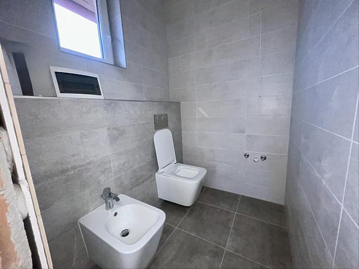 A fenti szinten a burkolatok nagy része, illetve a szaniterek, szanua már megvan, az alsó szinten kell számítani a helyiségek burkolását, szaniterek beépítését, illetve a konyhabútor nincs beszerelve, és nem tartalmazza a vételár.