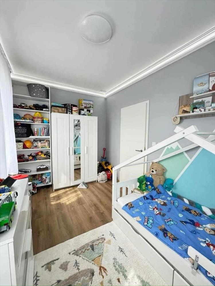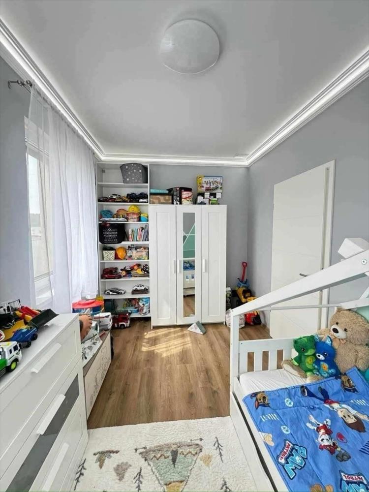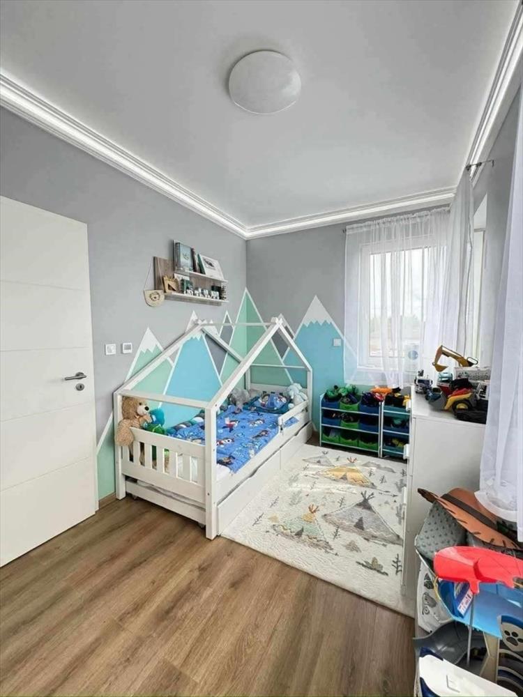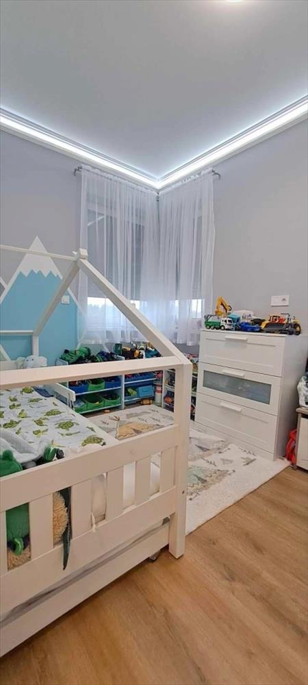 Az emeleten további három hálószoba és egy második fürdőszoba található, biztosítva a privát szférát a család minden tagjának.