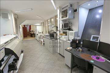 Az irodát és a nyomdai helyiséget elektromos üvegajtó választja el egymástól.