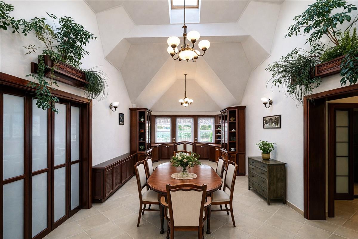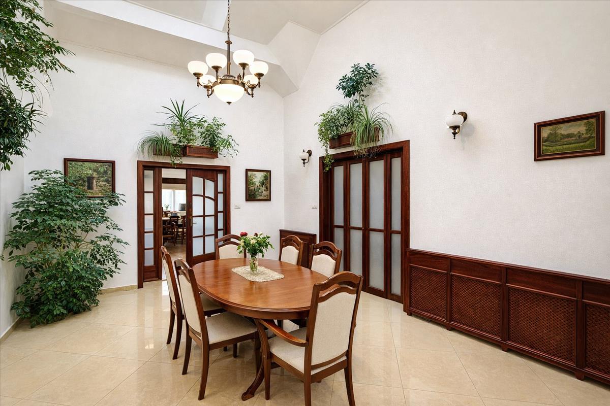 A lakás központi helye, a nagy belmagassággal rendelkező, a tetőablakoknak köszönhetően rendkívül világos, impozáns kialakítású, 45 m2-es hall-konyha-étkező.