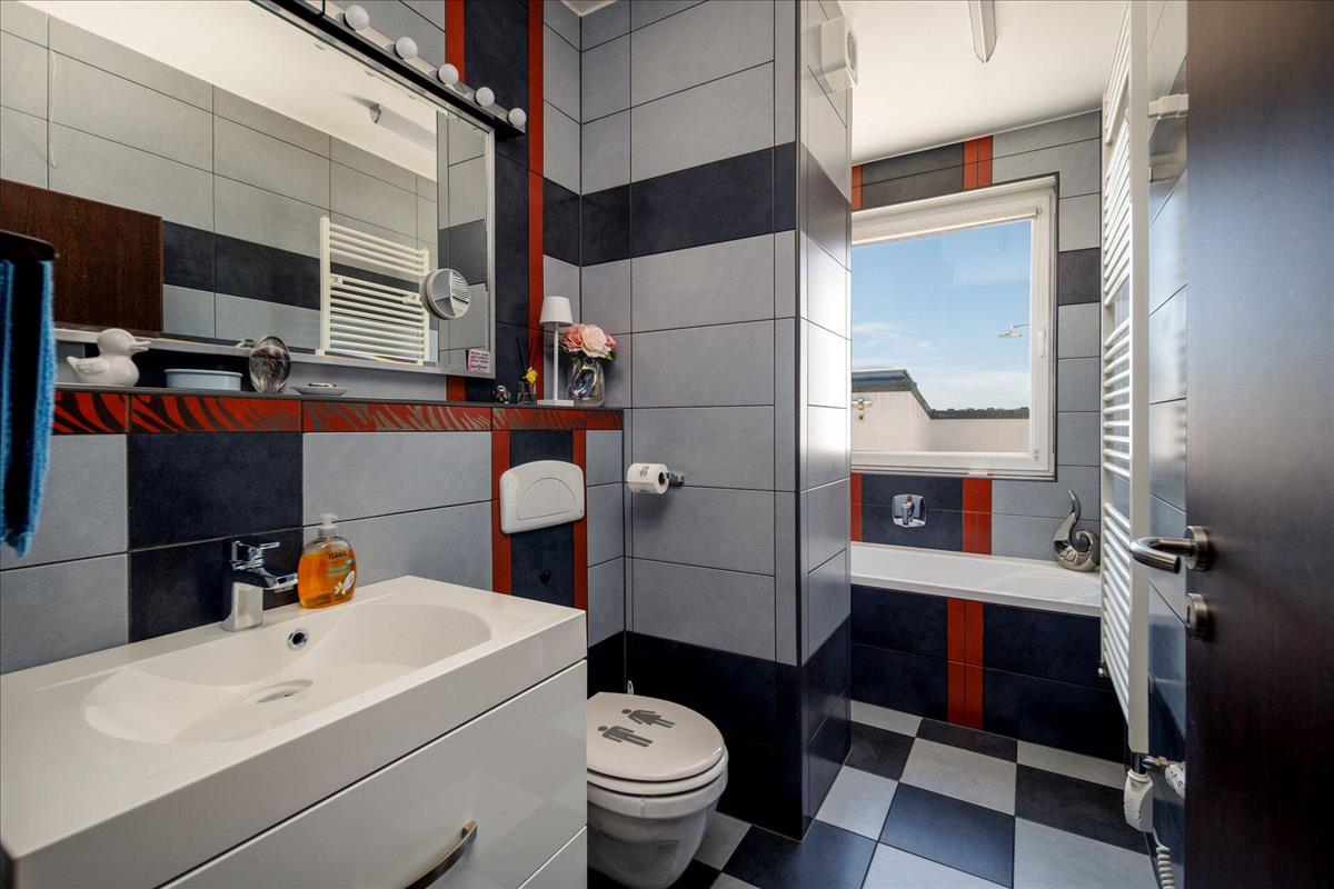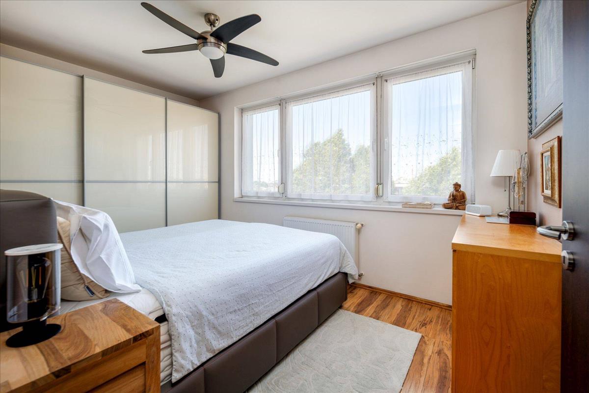 A lakásban két különálló fürdőszoba is helyet kapott – az egyik zuhanyzós, a másik pedig kádas kialakítású –, ami nagy előny többgyermekes családok vagy vendégek esetén. a modern életvitelhez igazodva műanyag nyílászárók és redőnyök biztosítják a komfortot és az energiahatékonyságot.