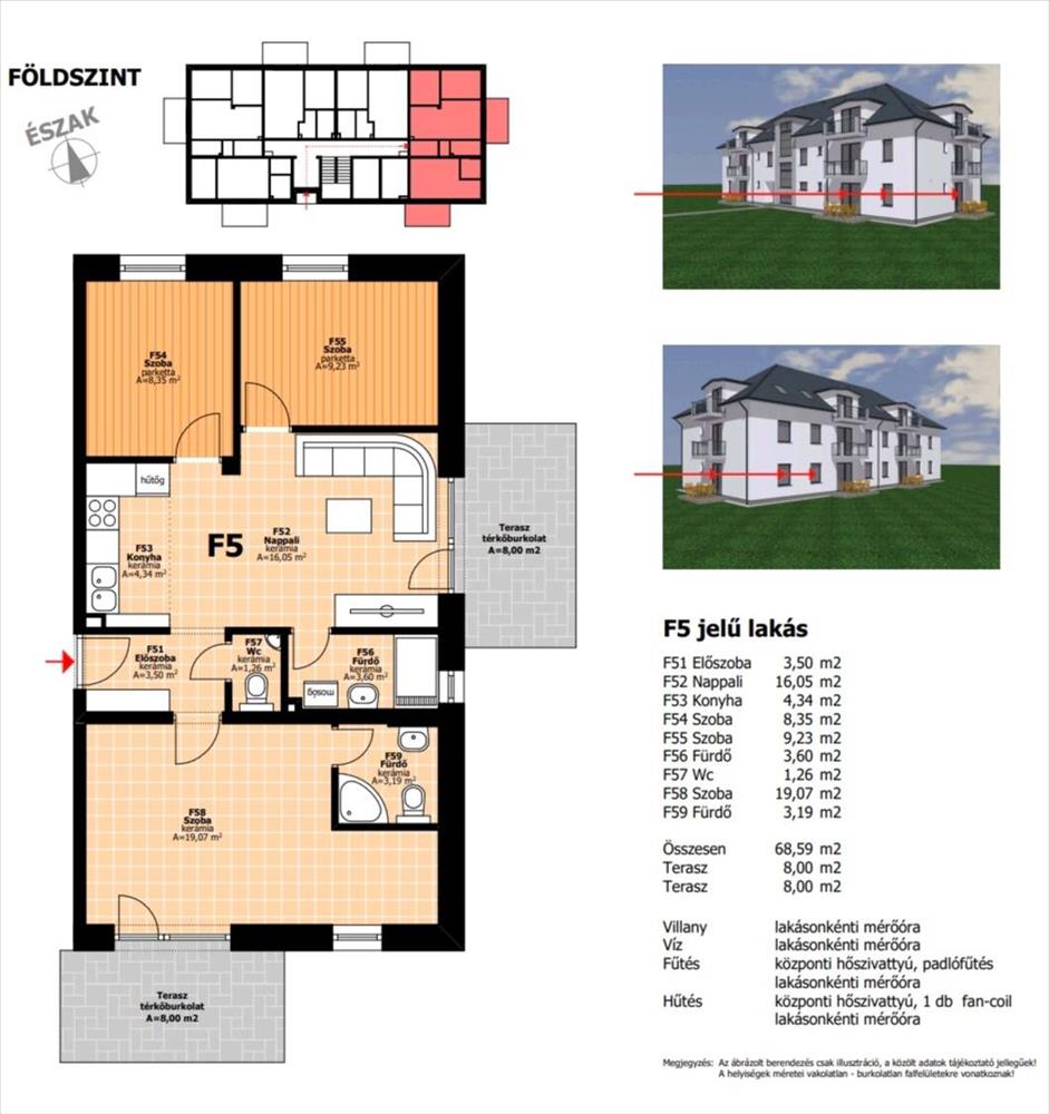 A feltüntetett ár fűtéskész állapotra vonatkozik. Tartalmazza a vakolt belső falazatot, villamos és víz alapszerelés beépítését.