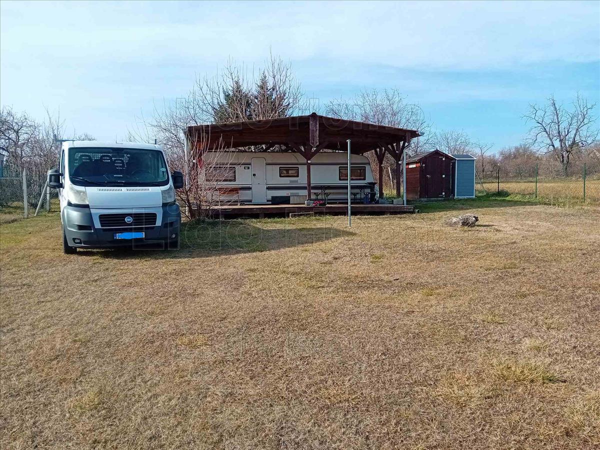 -50 m²-es fatetőszerkezet, lemeztetővel borított, alatta egy 20 m²-es (8x2, 5 m) jó állapotú lakókocsi található (5 férőhelyes). Benne hangulatos fa szekrények, ágyak, praktikus kis konyhával felszerelt.