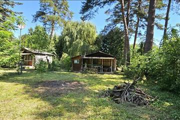 Mind a2 telken van 1-1 beton lapra épült könnyüszerkezetes kb 30 nm-es faház, hullámpala fedéssel
