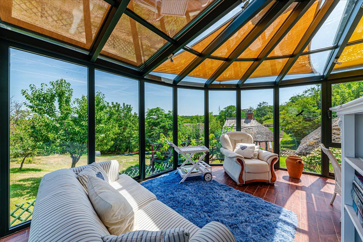 A több mint egy hektáros, gyönyörűen parkosított telek, autóbeállóval és további épületekkel rendelkezik. a területen található egy 2015-ben felújított vendégház, amely nappali-konyhával, egy nagy épített fürdőszobával és egy hűvös borospincével várja új tulajdonosait. Emellett egy nagyobb garázs is rendelkezésre áll, amely a szerszámok és gépek tárolására szolgál.