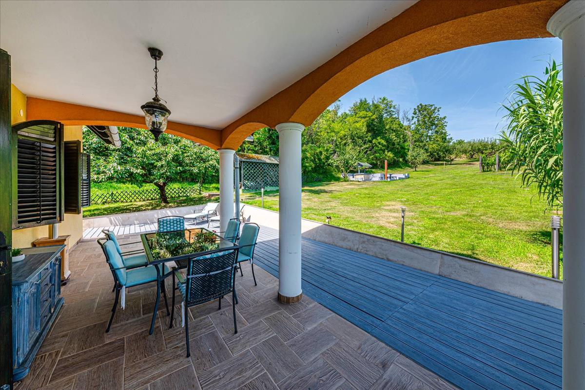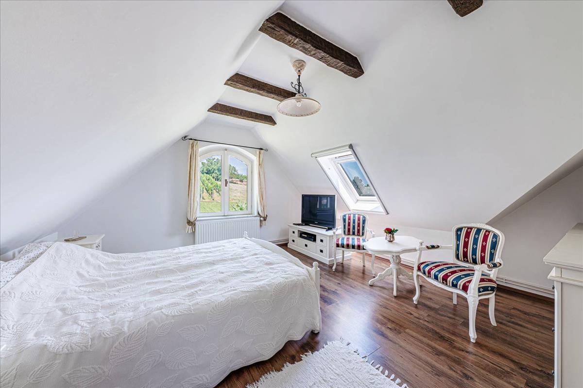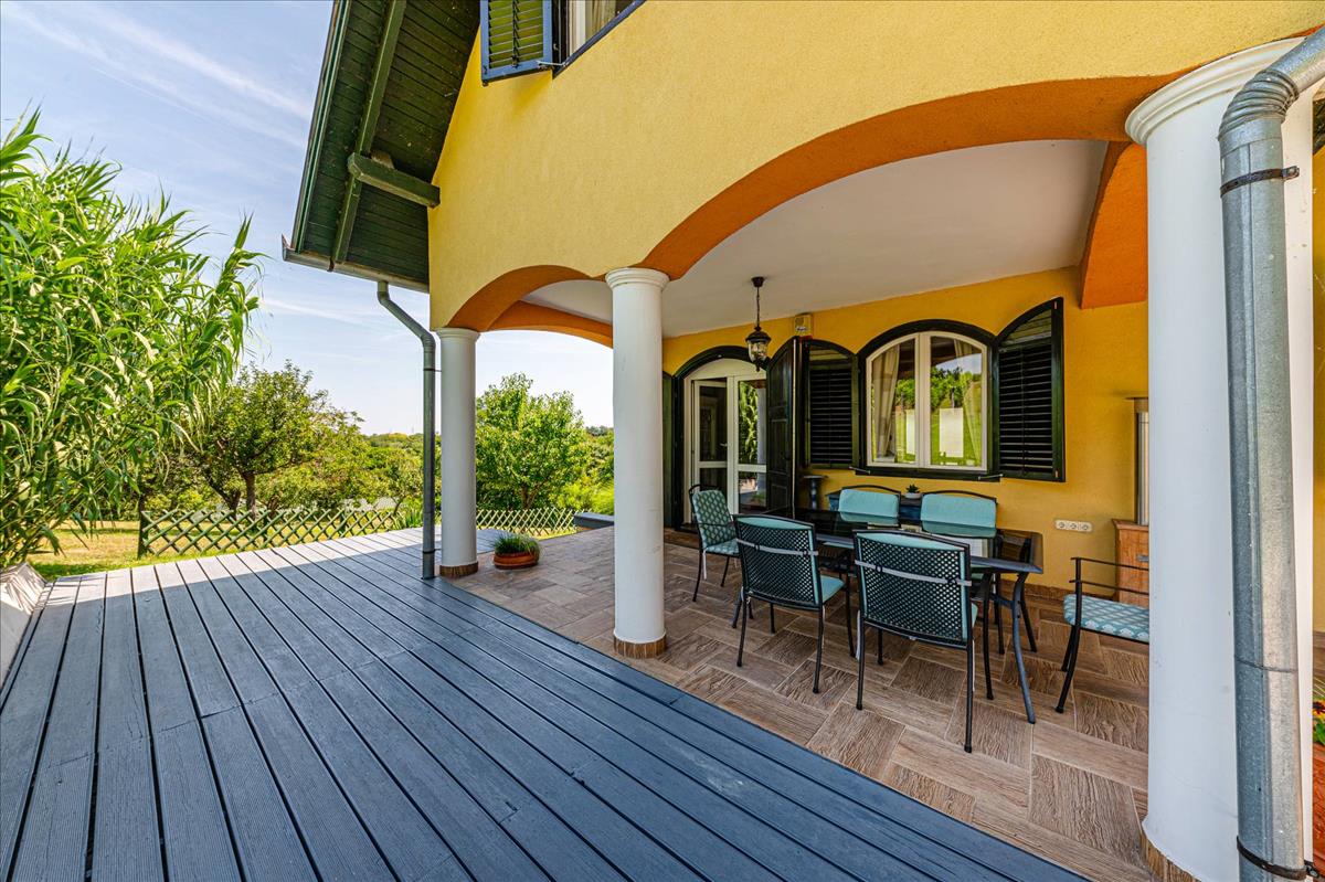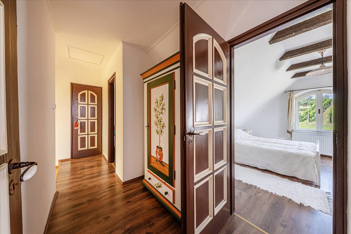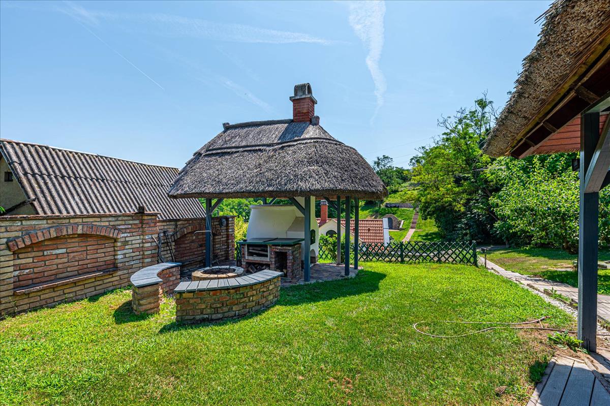 Az 1999-ben, kiváló minőségben épült ház, folyamatos karbantartás alatt állt, így megőrizte eredeti szépségét és hangulatát. a földszinten egy amerikai-konyhás nappali, egy fürdőszoba, illetve egy tágas télikert található, amely tökéletes helyet biztosít a családi összejövetelekhez és baráti találkozókhoz. a hűvös alagsor háztartási helyiséget és tárolót kínál, az emeleten pedig három kényelmes hálószoba és egy fürdőszoba található. Az épülethez tartozó nagyméretű teraszról lenyűgöző kilátás nyílik a parkosított kertre és a szőlőültetvényre, amely a természet közelségét és a nyugalmat sugározza.